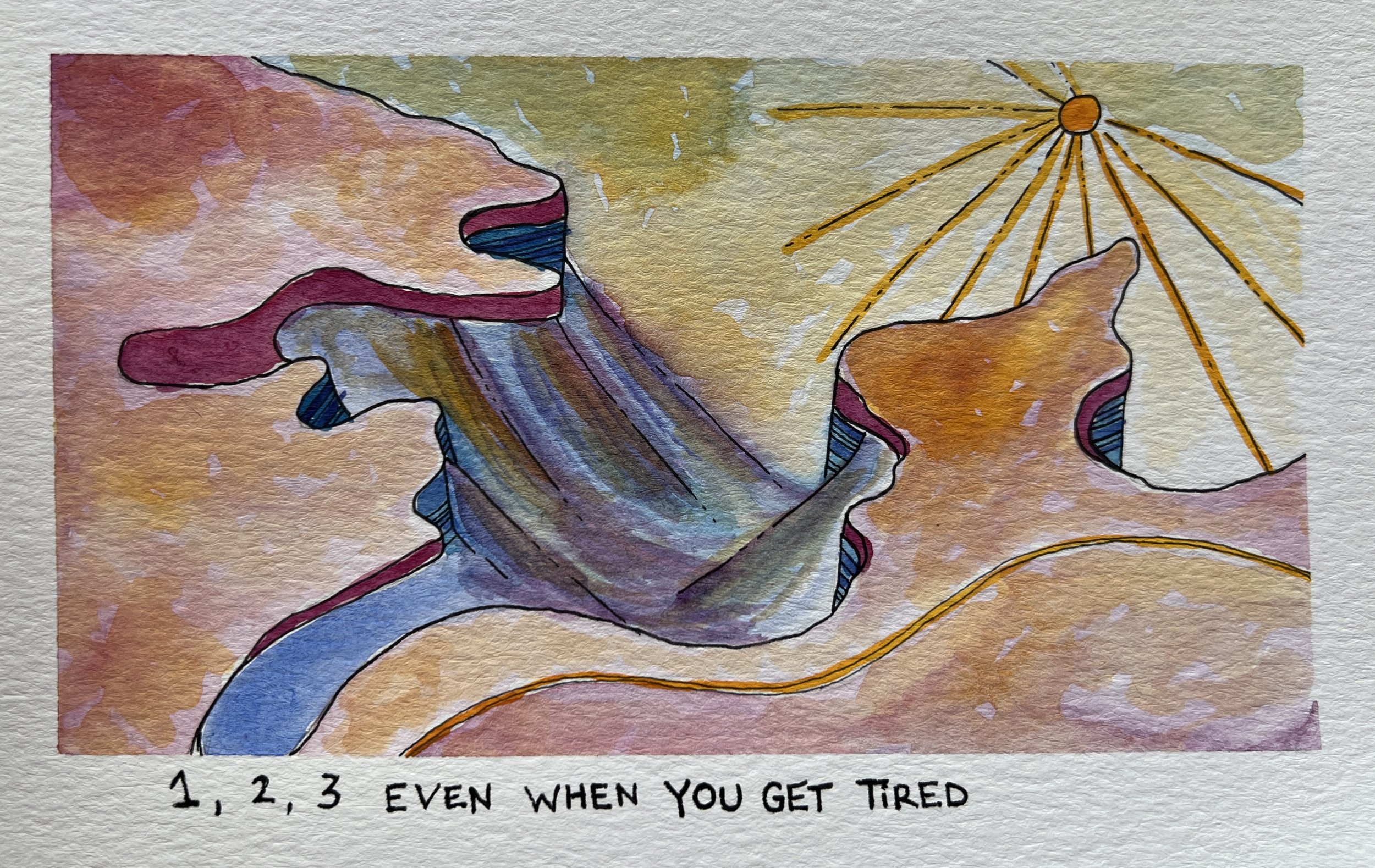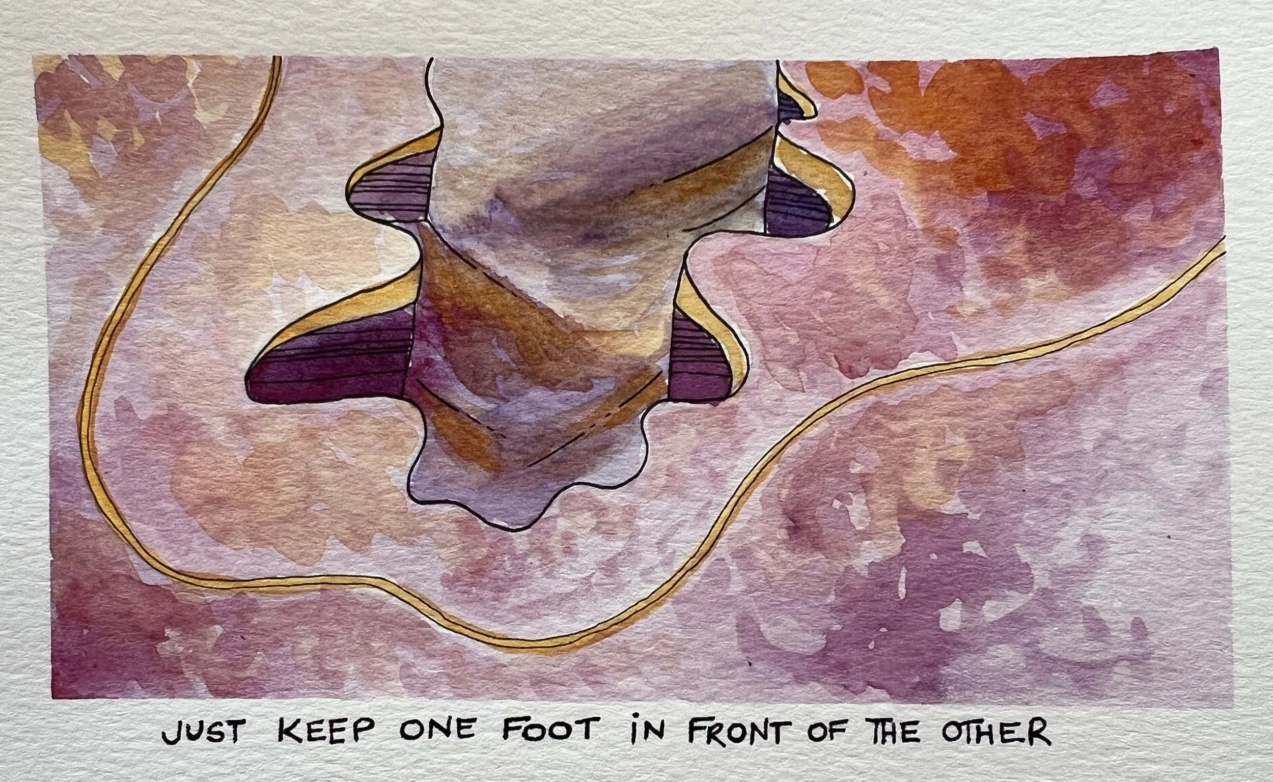 “One, two, three, even when you get tired, just keep one foot in front of the other,” I hummed under my breath. “There’s no race, no ending in sight, no second too short, no window too tight.”