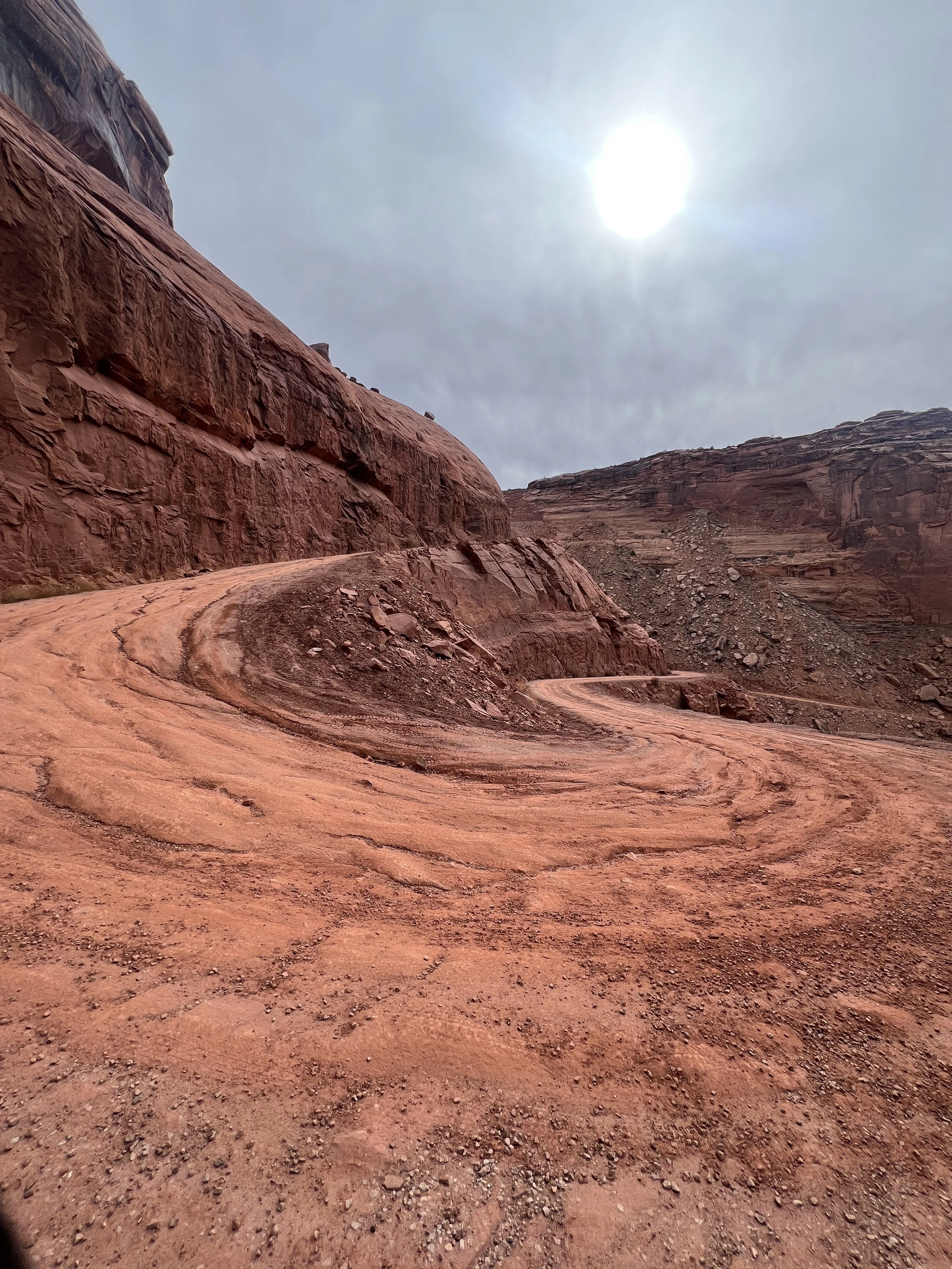 The red desert turned indigo in the twilight. Any time the trail dipped into a descent, I pedaled as hard as I could, racing the waning light. A few miles later, I hauled up another climb that I thought was THE climb, only to see another steep wall of rutted dirt trail above me.