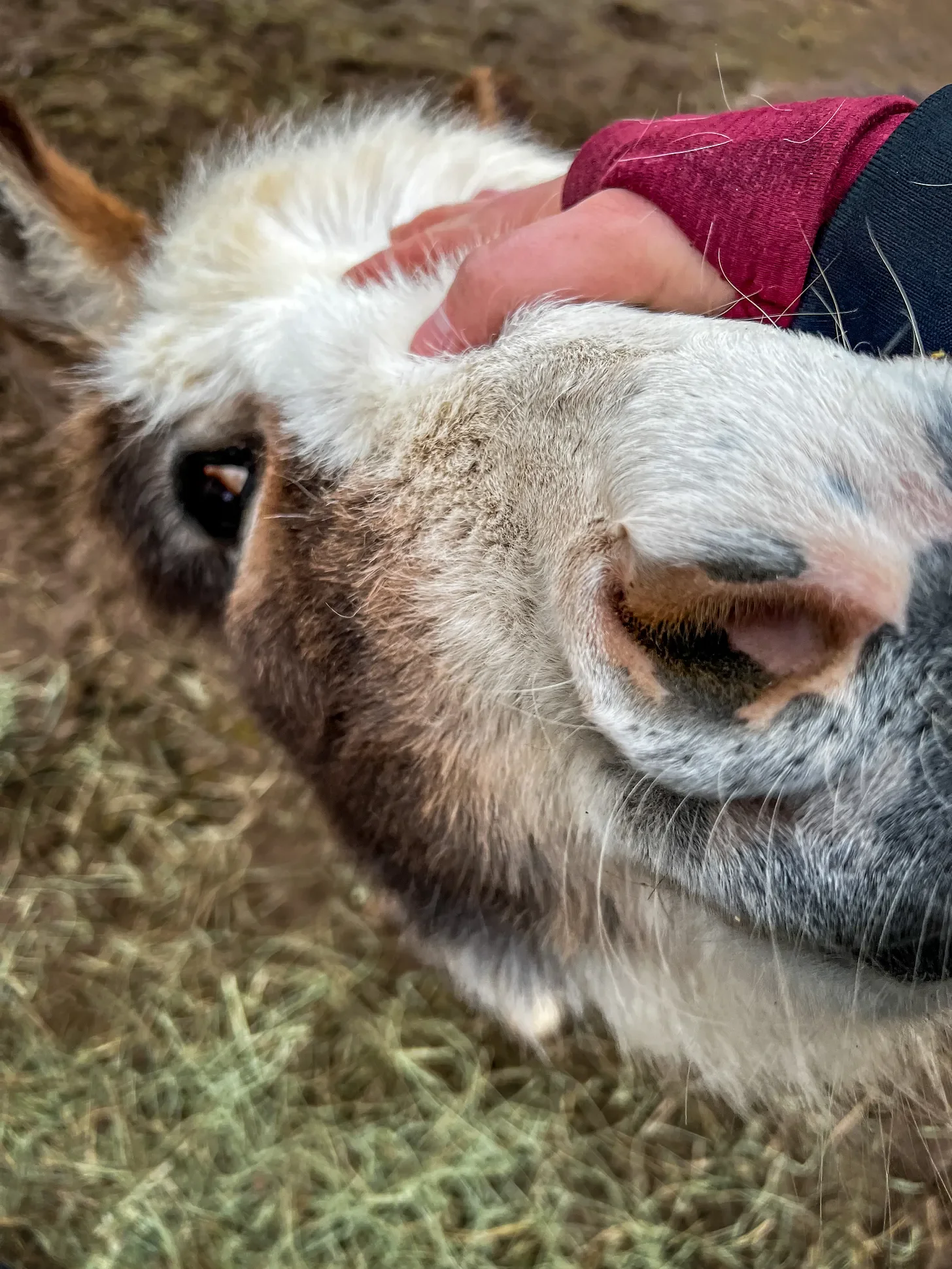 I don’t know if I’m supposed to do anything with this donkey or if I’m responsible to him in any way, but he seems content and happy for the extra head scratches. No one has confirmed how long he will stay with Tex. So until someone says otherwise, I just treat his presence as a lovely, unexpected aspect of horse ownership.
